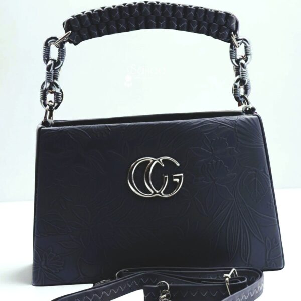 Luxury Black Embossed Leather Handbag with Silver Logo