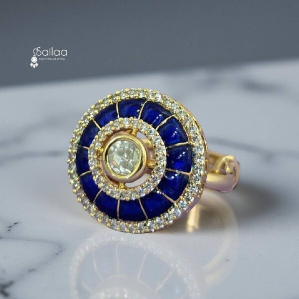 Sailaa Royal Blue Kundan Adjustable Ring – Designer Statement Jewellery for Women.