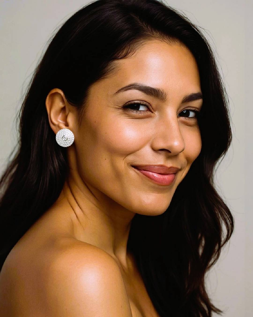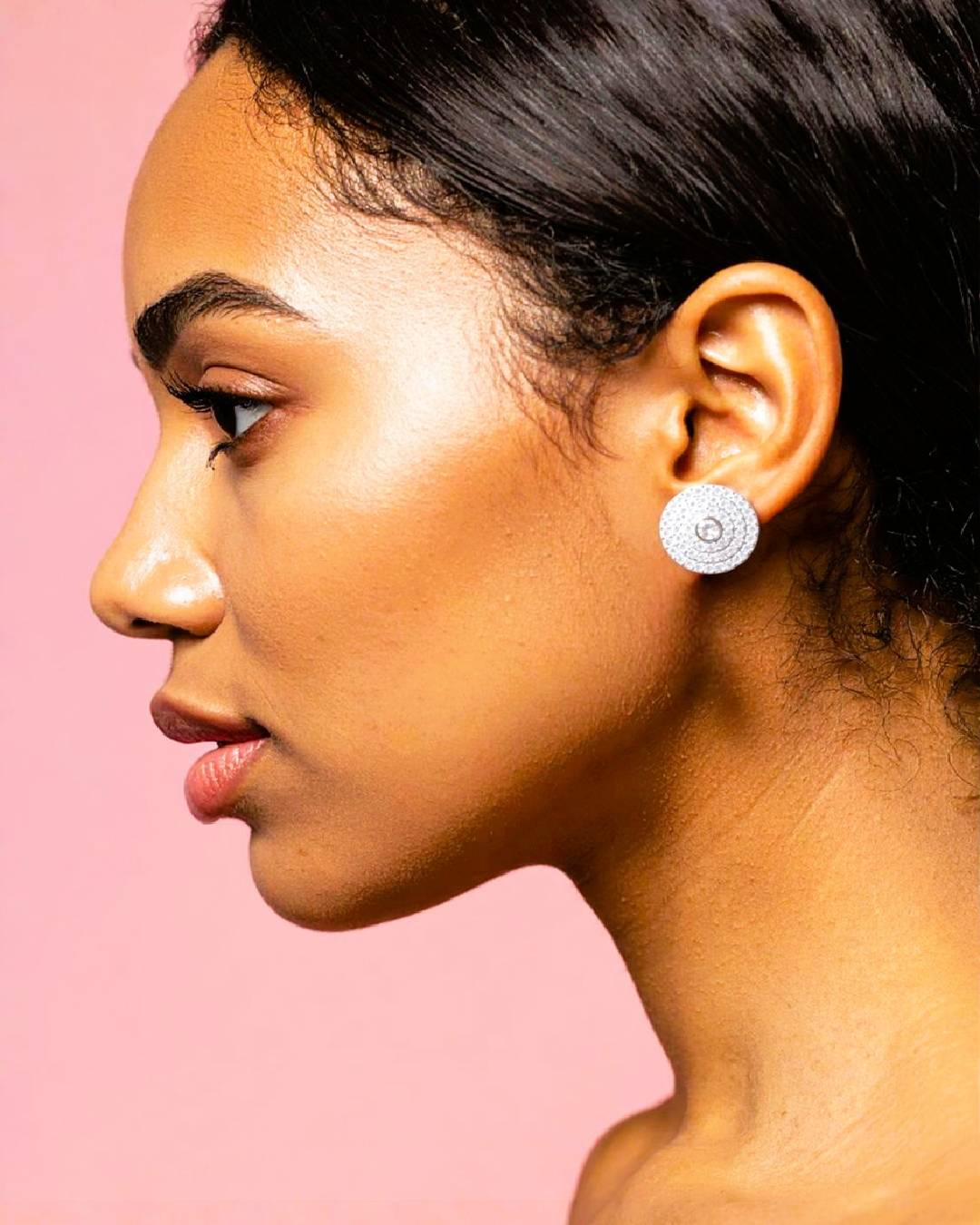 Sailaa American Diamond Round Stud Earrings – Elegant Crystal Pave Design for Women & Girls