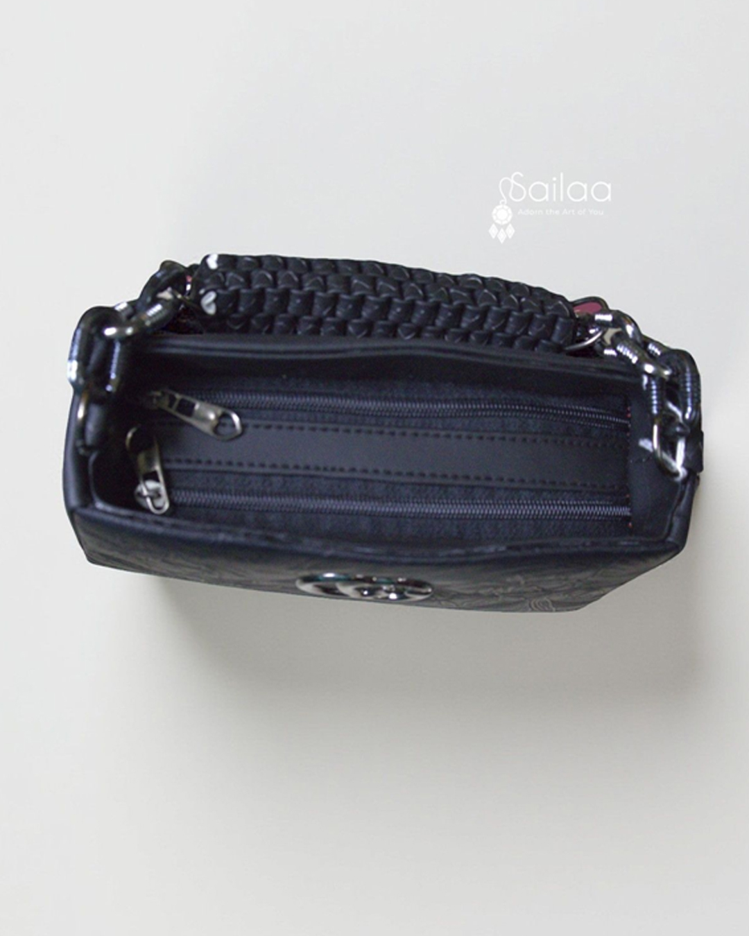 Luxury Black Embossed Leather Handbag with Silver Logo