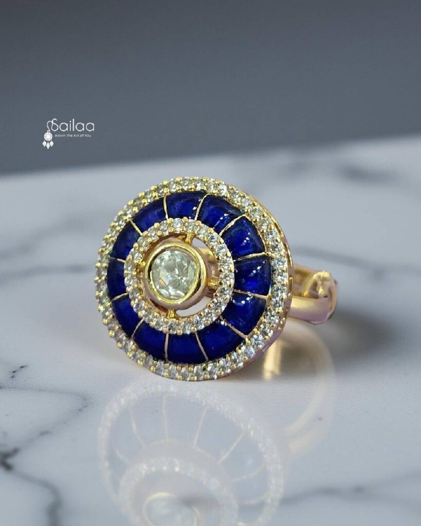 Make a bold statement with this unique, tarnish-resistant gold ring from Sailaa. Its modern, abstract design features an elegant, open-frame shape that beautifully complements any outfit. This piece is a true work of art, crafted to be both visually striking and durable. Perfect for adding a touch of contemporary sophistication to your everyday style, this ring is an essential accessory for those who appreciate a blend of artistic design and lasting quality