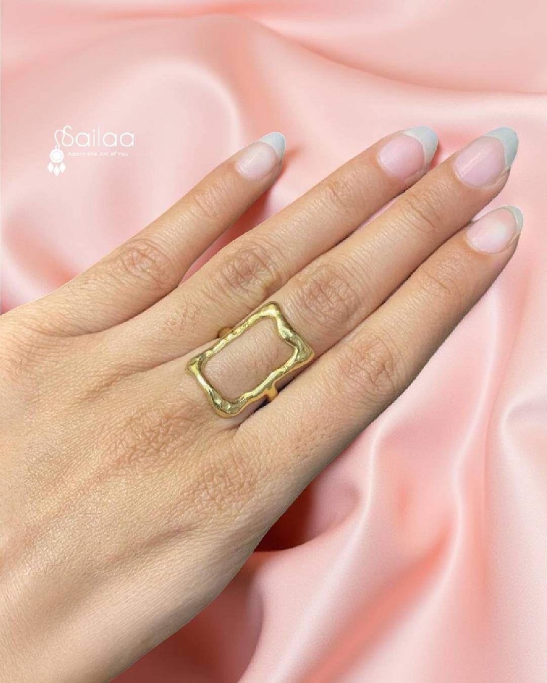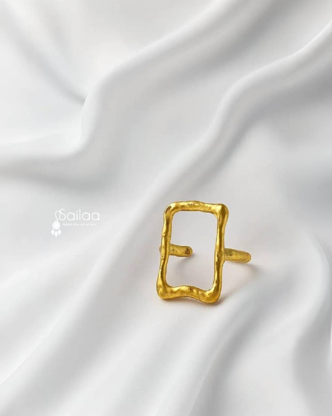 Sailaa Minimalist Tarnish-Free Gold-Plated Geometric Open Rectangle Ring