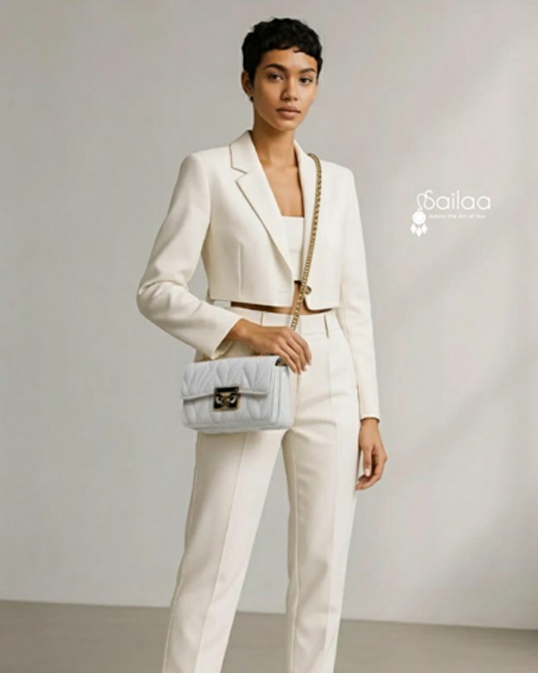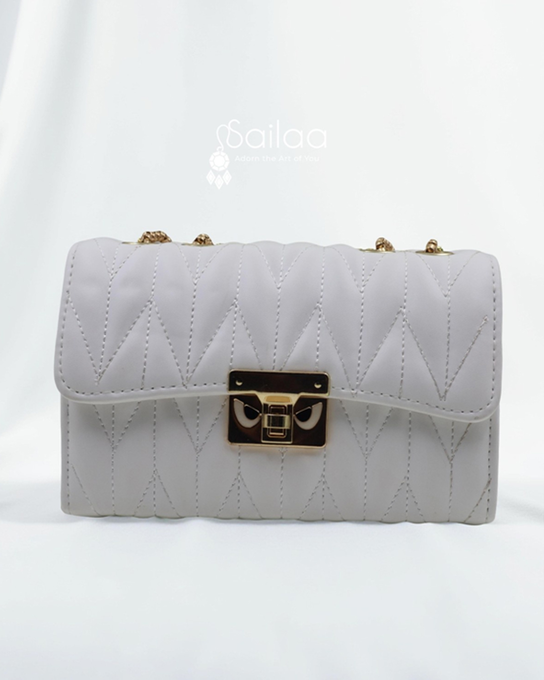 Effortlessly elegant, the Sailaa White Quilted Chain Handbag is the perfect blend of sophistication and versatility. Crafted with a plush quilted texture and adorned with a gold metal chain, this designer bag redefines modern luxury. Whether styled with a power suit, a casual dress, or evening wear, this statement piece elevates your look with a touch of timeless class. Designed for today’s confident woman, Sailaa combines premium quality with signature elegance.